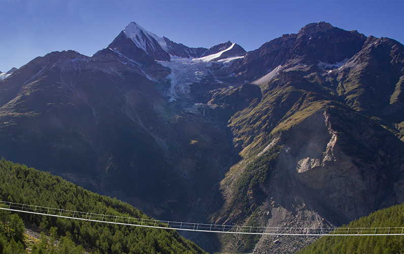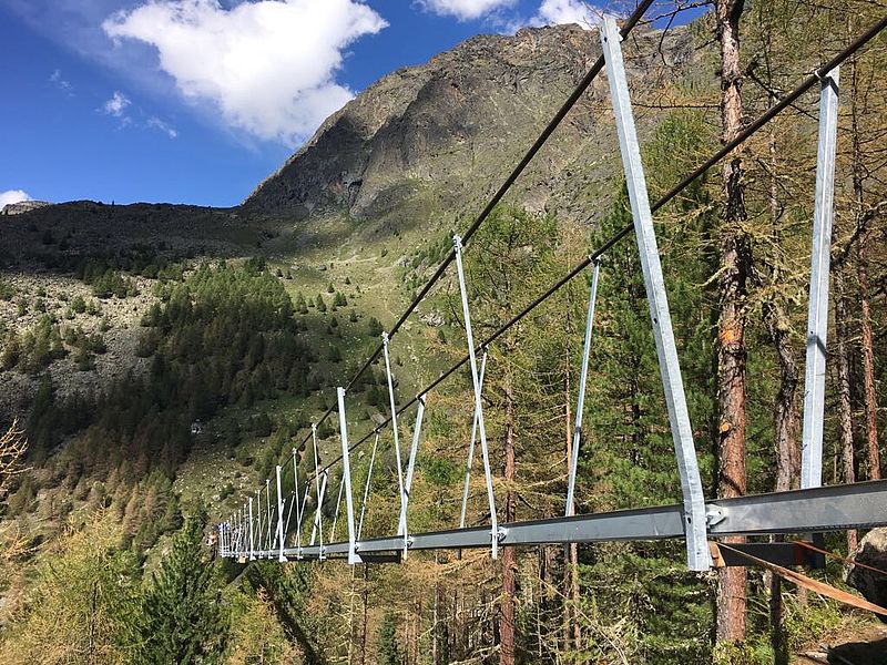 Eine neue Hängebrücke macht ab 29. Juli 2017, den seit sieben Jahren aus Sicherheitsgründen gesperrten Europaweg zwischen Grächen und Zermatt wieder durchgehend begehbar.